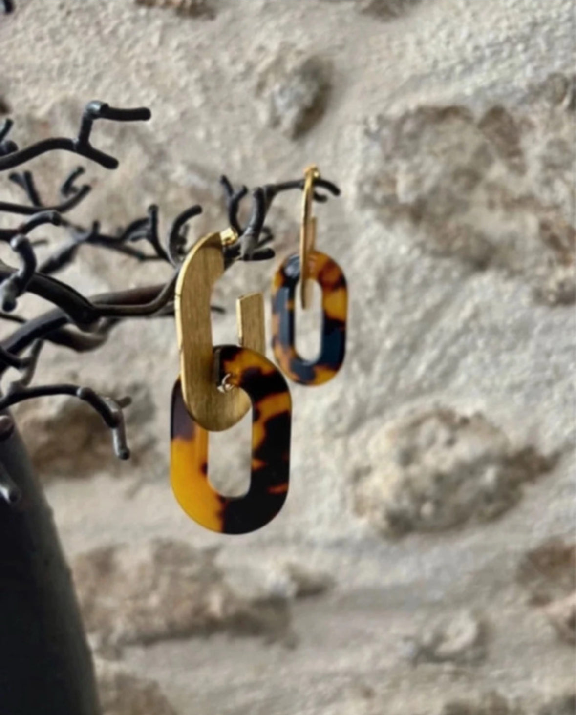 Boucles d’oreilles Chiara – Boucles XL Maillons Dorés Écaille de tortue