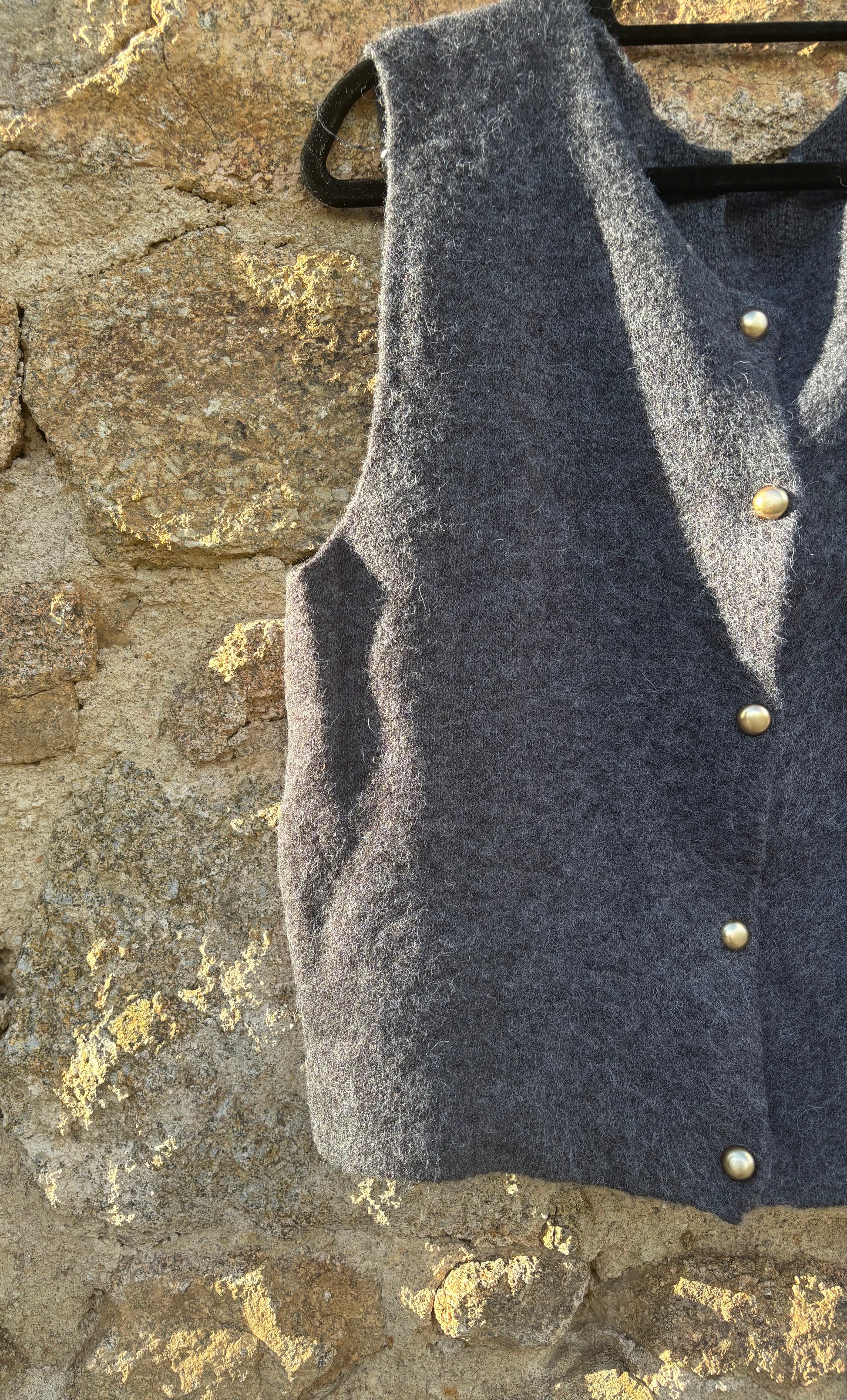 Le cardigan sans manches Alizée est la pièce cosy et tendance de la saison. Avec sa maille tout douce et ses petits boutons dorés, il apporte une touche chic et facile à porter.