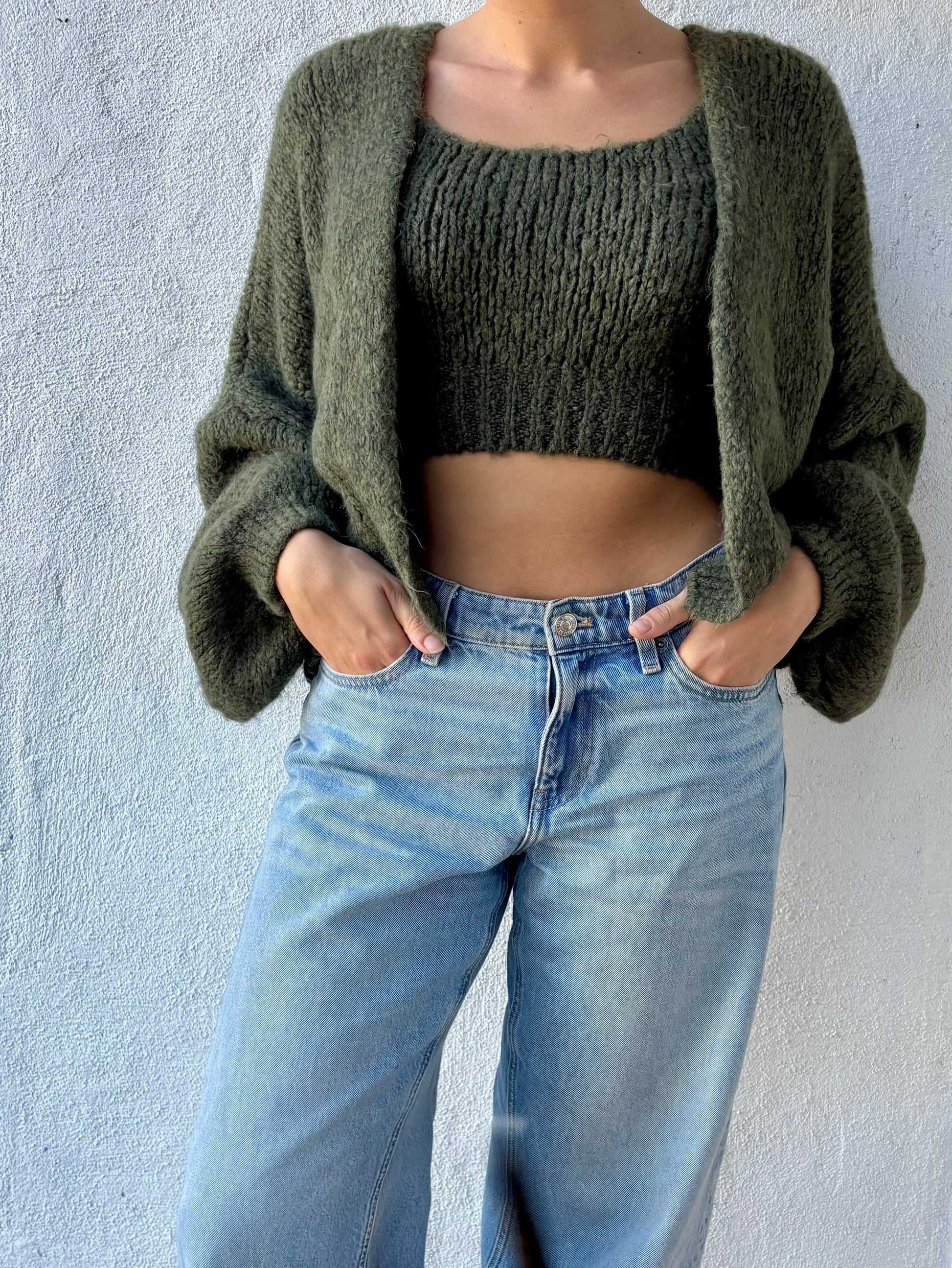 Ensemble gilet oversize & top débardeur Romy - kaki