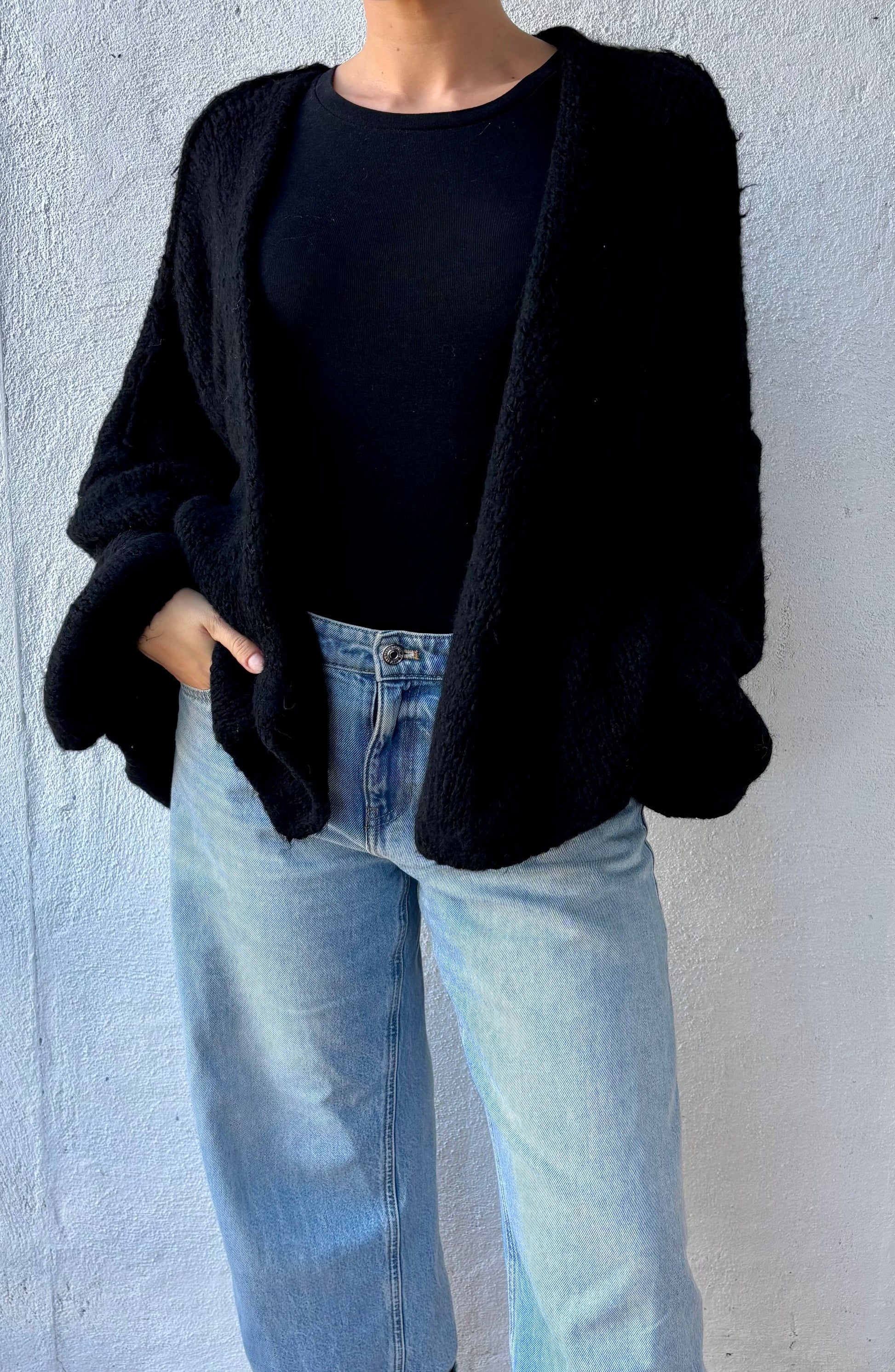 Un gilet oversize au charme affirmé, avec ses coutures extérieures qui apportent une touche de caractère sans rien perdre en douceur.