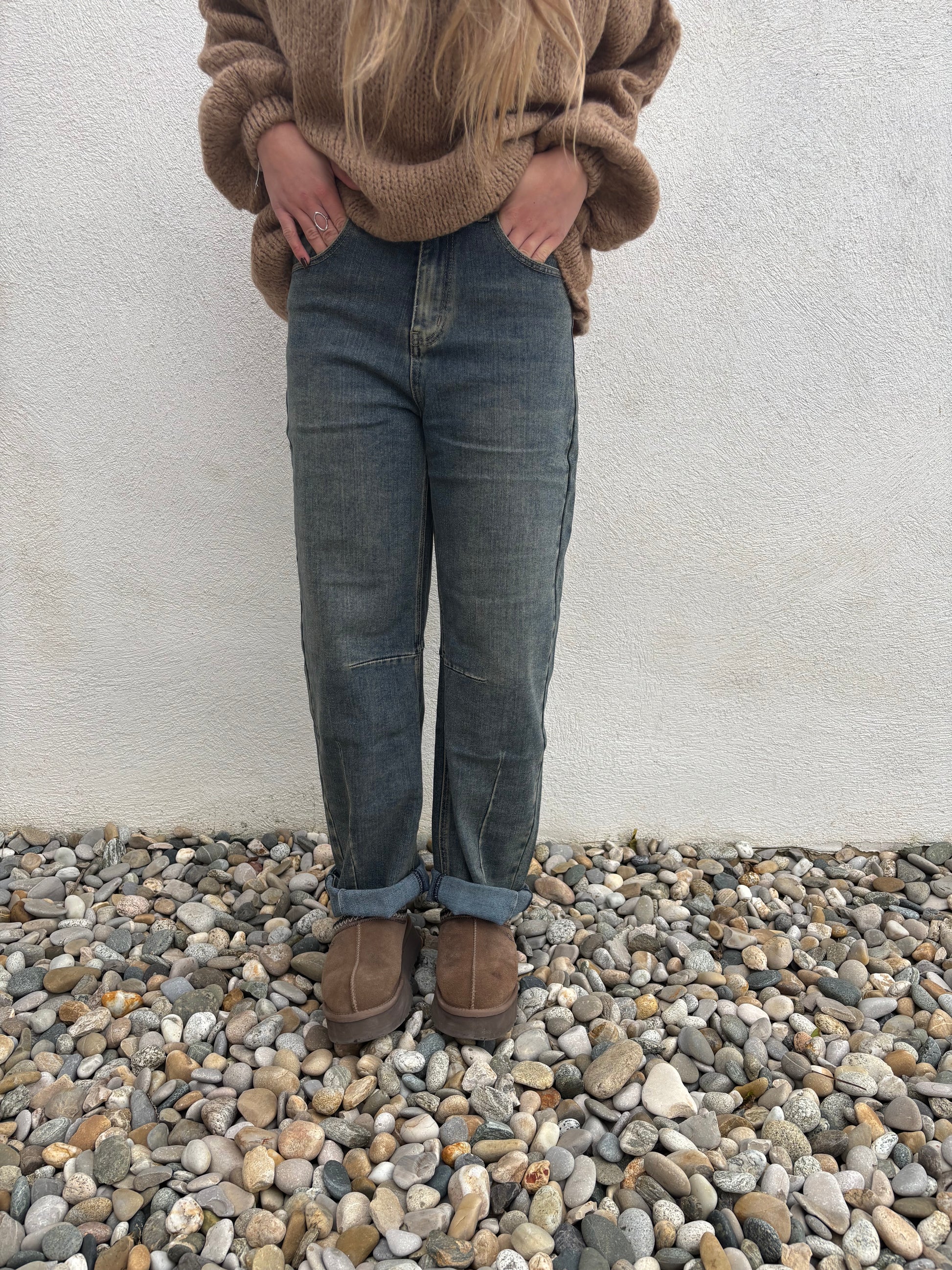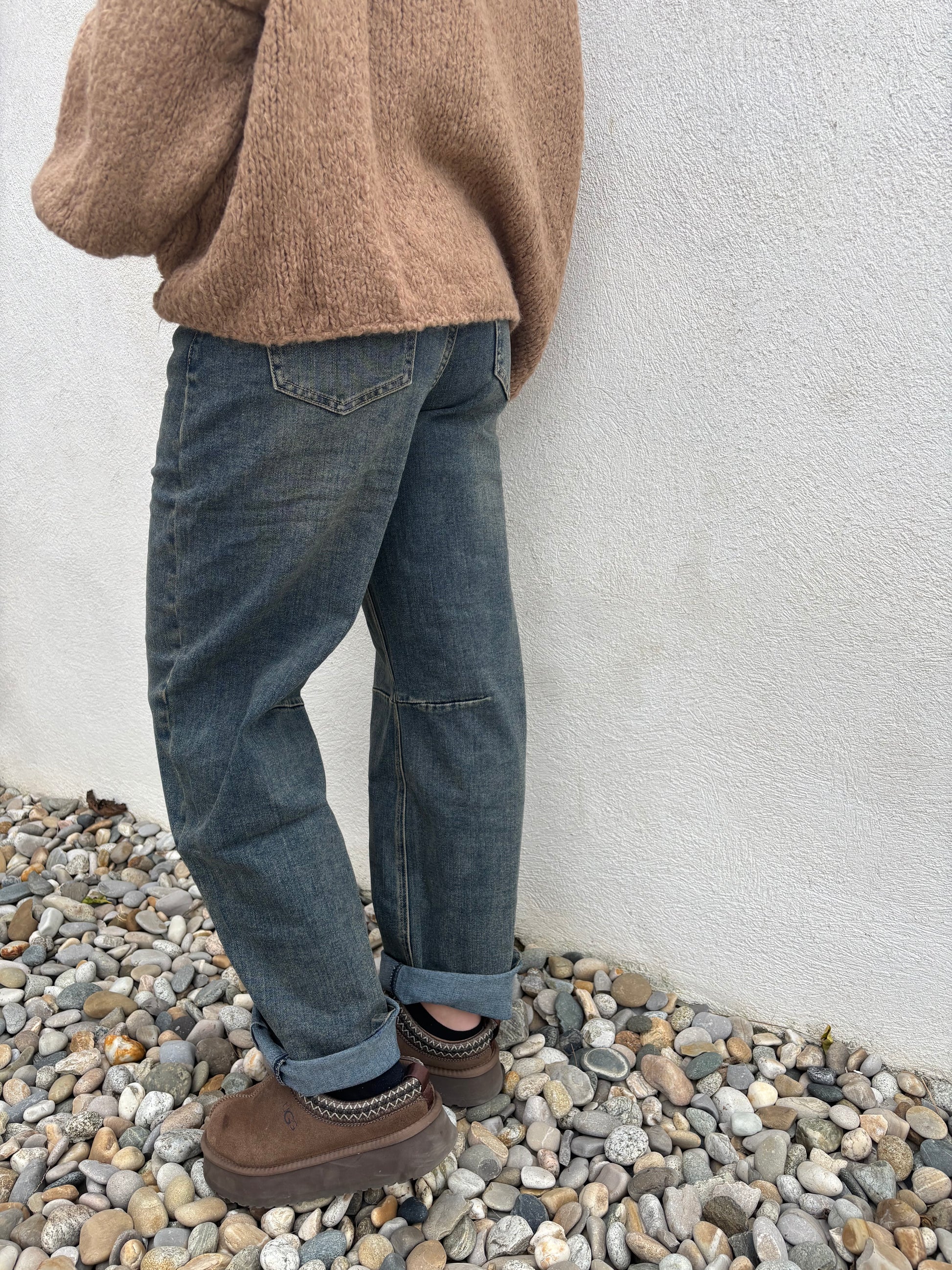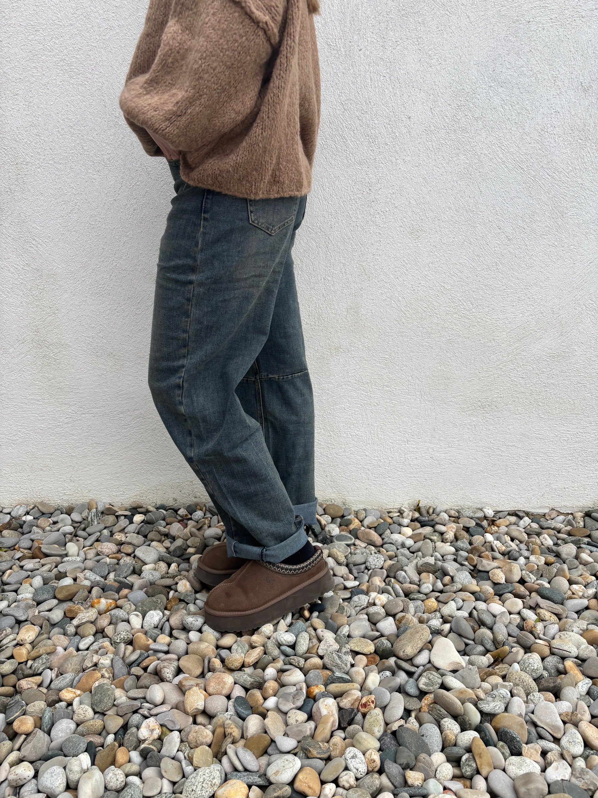 Découvrez le jean Lola, une coupe ballon tendance qui allie confort et style. Sa taille haute met en valeur la silhouette, tandis que sa coupe ample et arrondie sur la jambe apporte une touche moderne et décontractée.