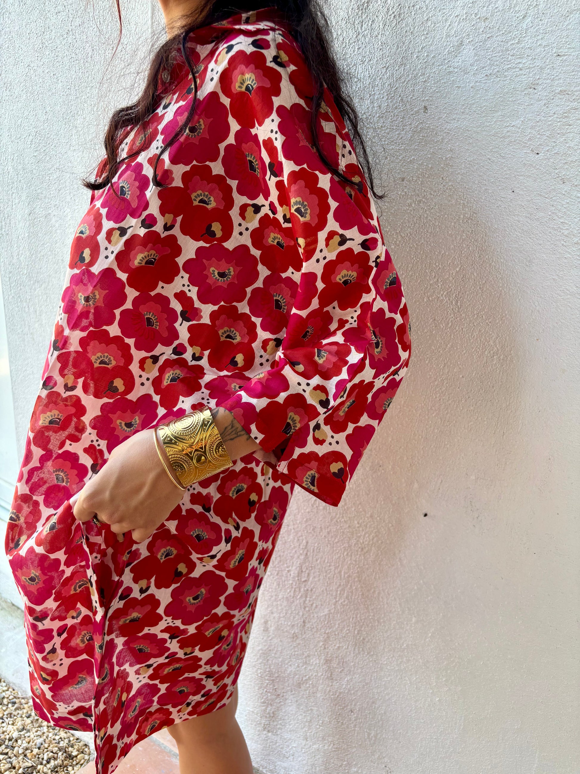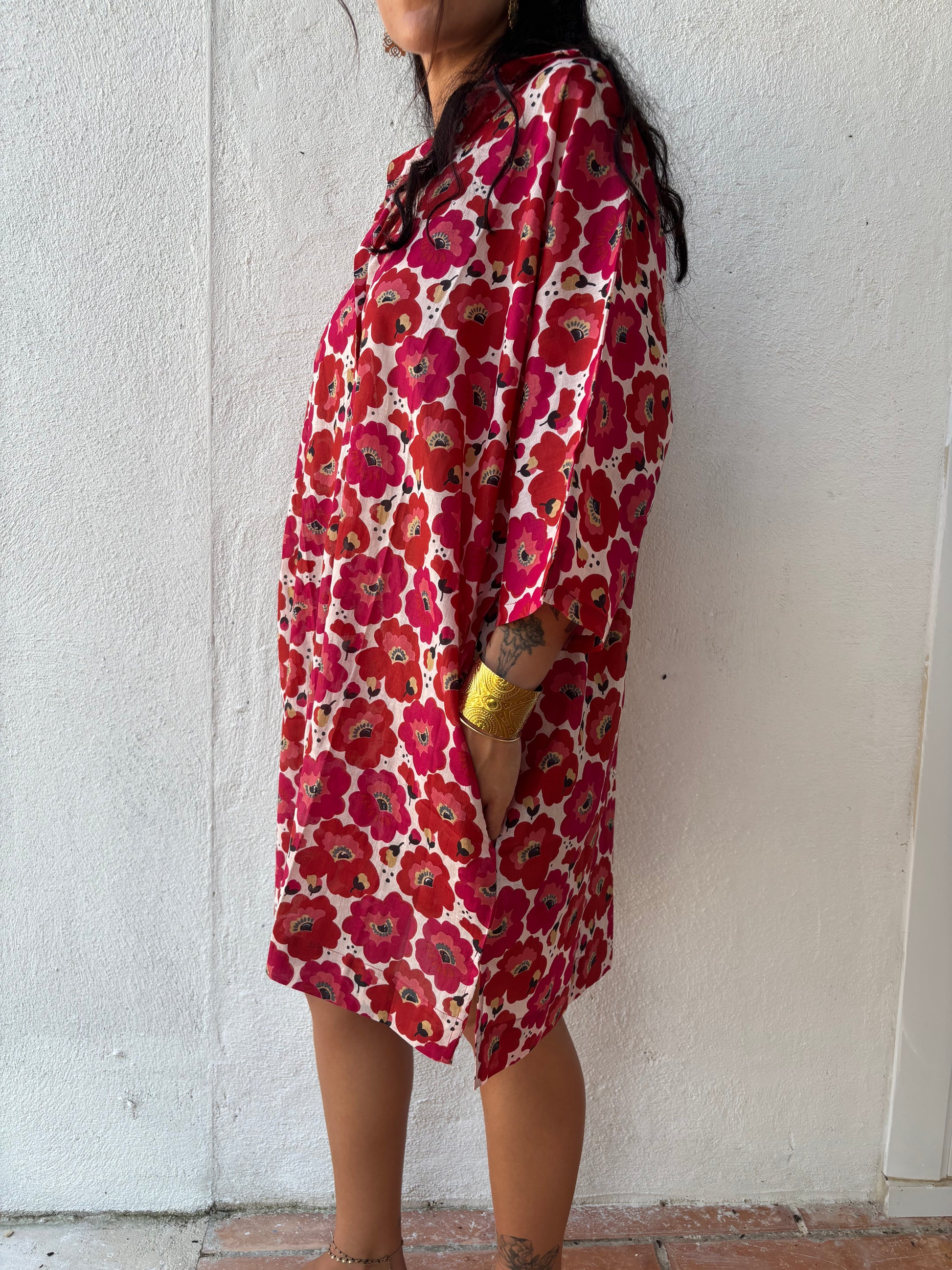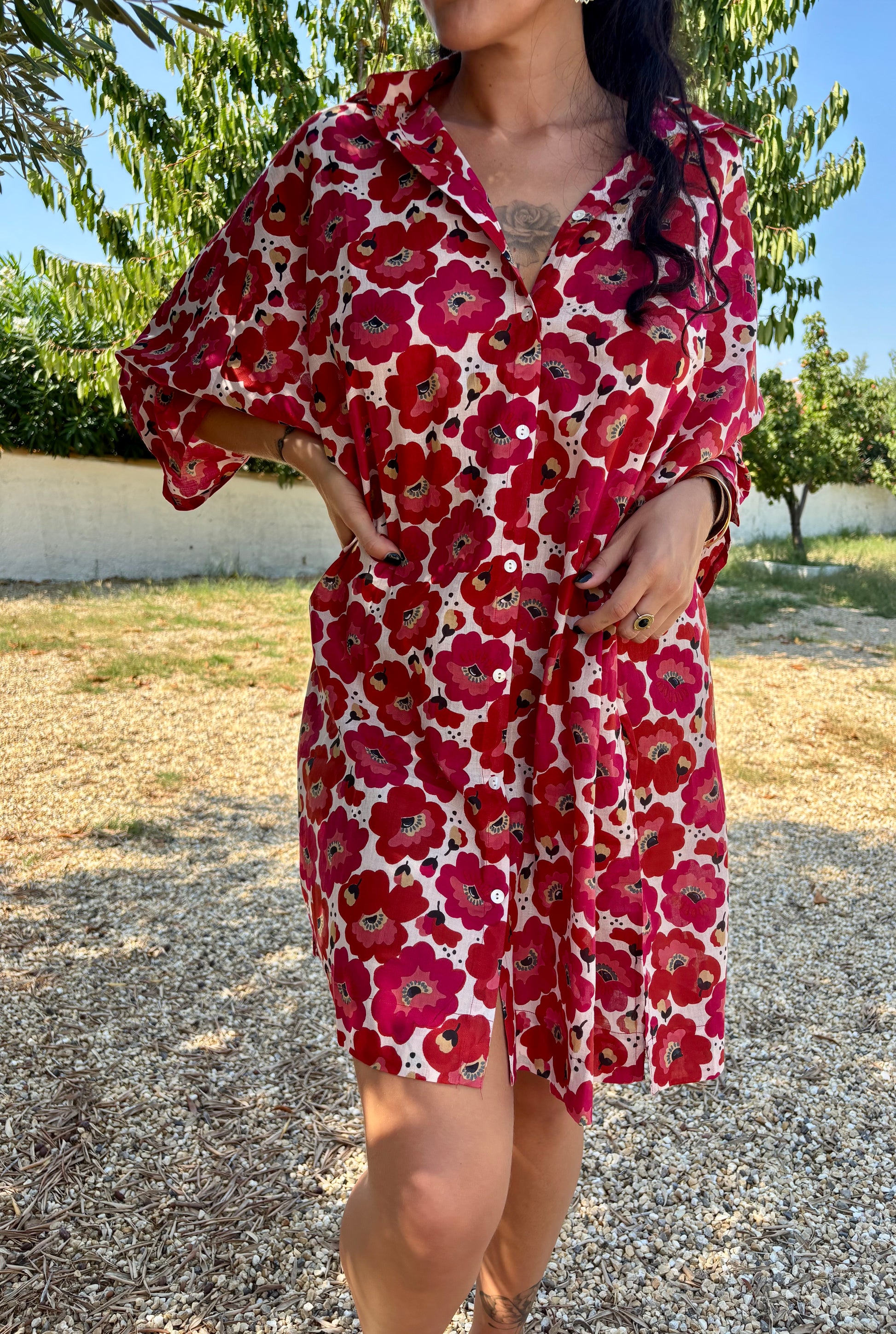 La robe-chemise Rosalie de la marque Palme mêle charme rétro et élégance naturelle. Sa coupe ample, ses manches trois-quarts et son col chemise permettent de la porter ceinturée pour structurer la silhouette ou loose pour un style décontracté.