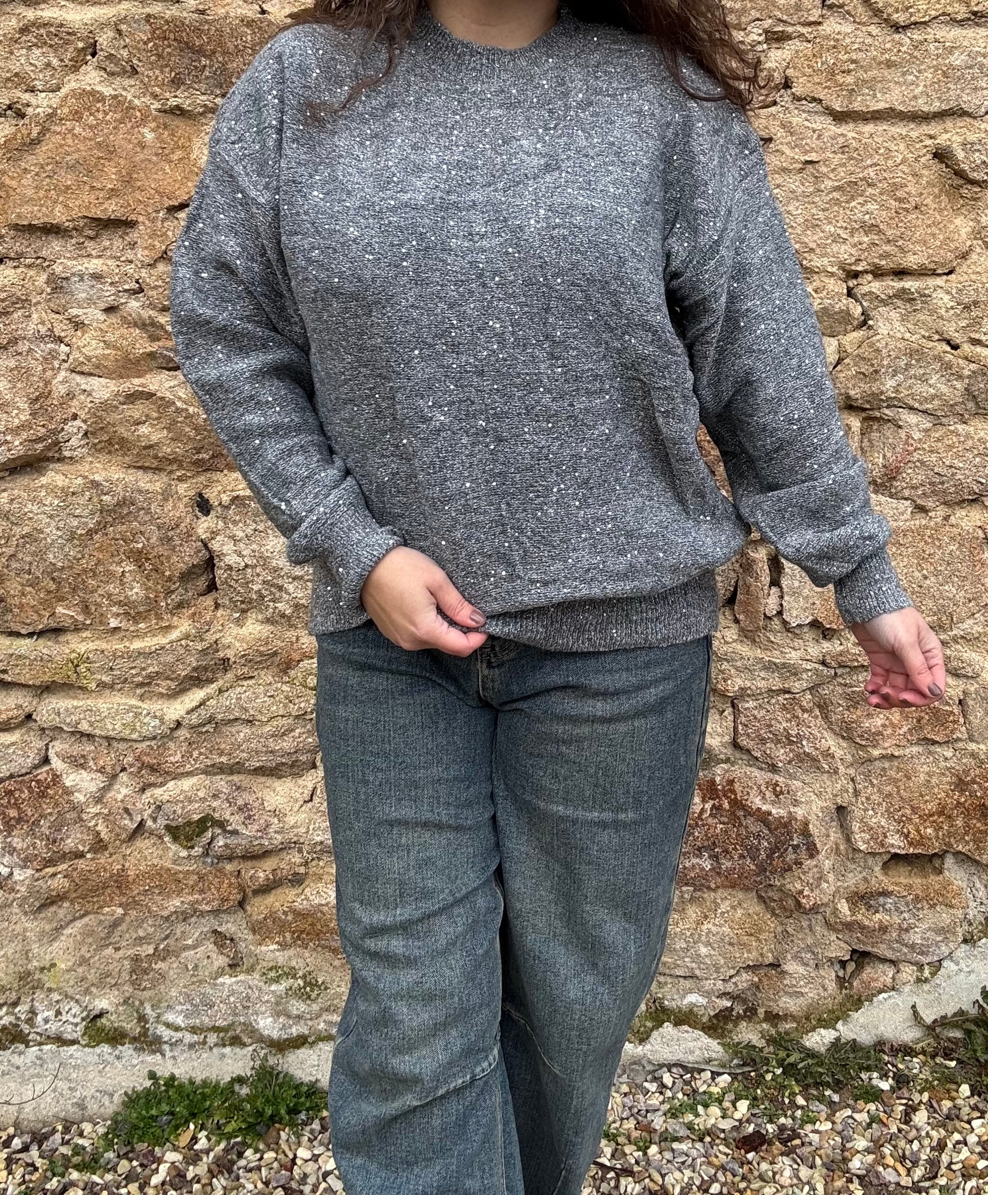 Pull Célestine - gris pailleté sequins