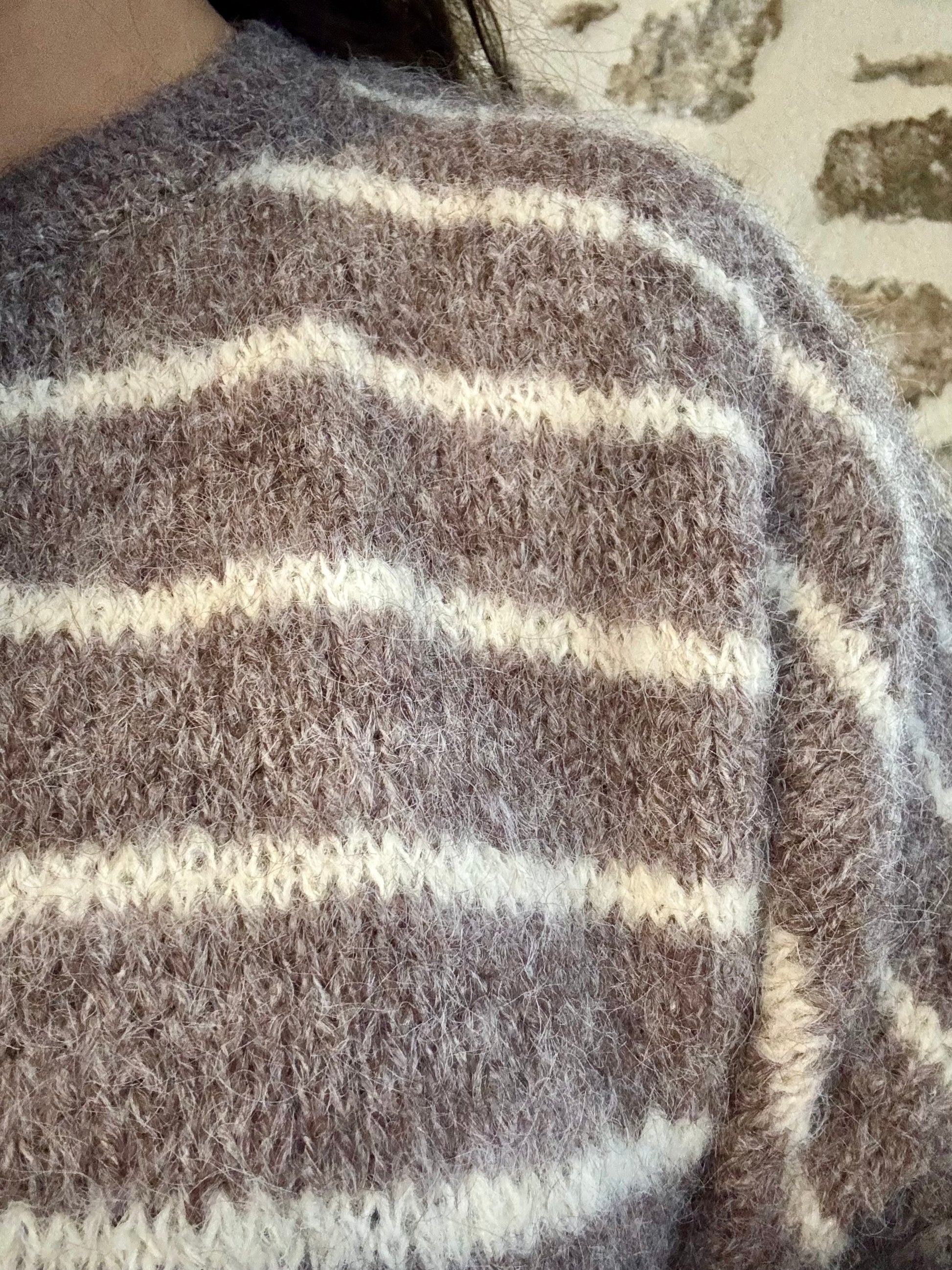 Découvrez le pull Léa, une pièce douce et confortable aux rayures intemporelles. Sa coupe oversize et ses manches longues apportent une touche décontractée et moderne à votre garde-robe.